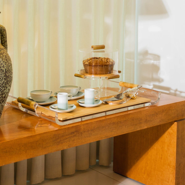 Bandejas para servir são marcadas por suas funcionalidades e sofisticação, durante a mesa de café essa peça proporciona facilidade na organização dos itens de serviço bem como na disposição dos alimentos.