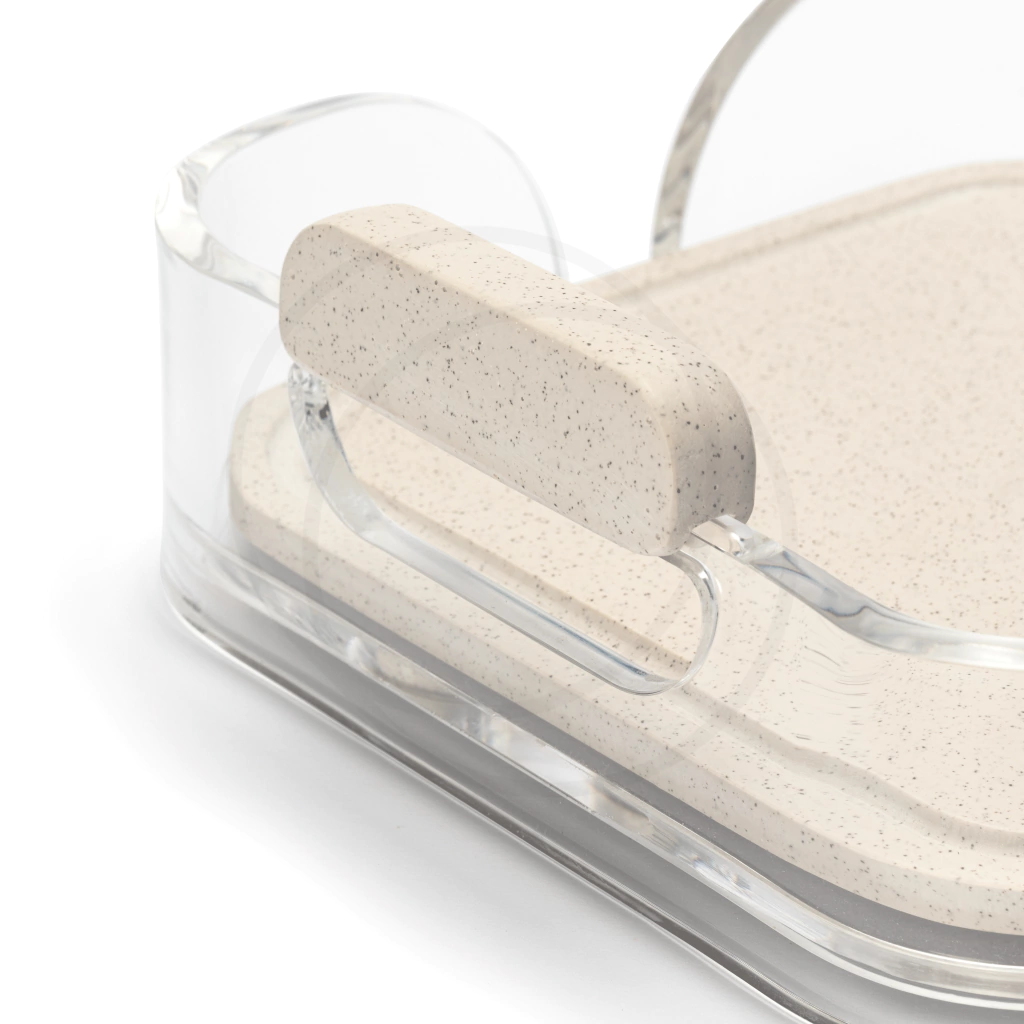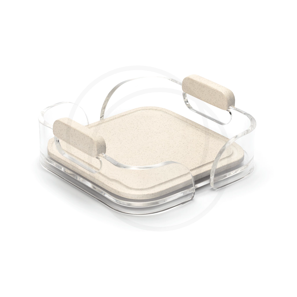 O match perfeito do Acrílico Cristal com o VogueStone, em um pantone warm gray que complementa muito bem toda a elegância de uma mesa minimalista.