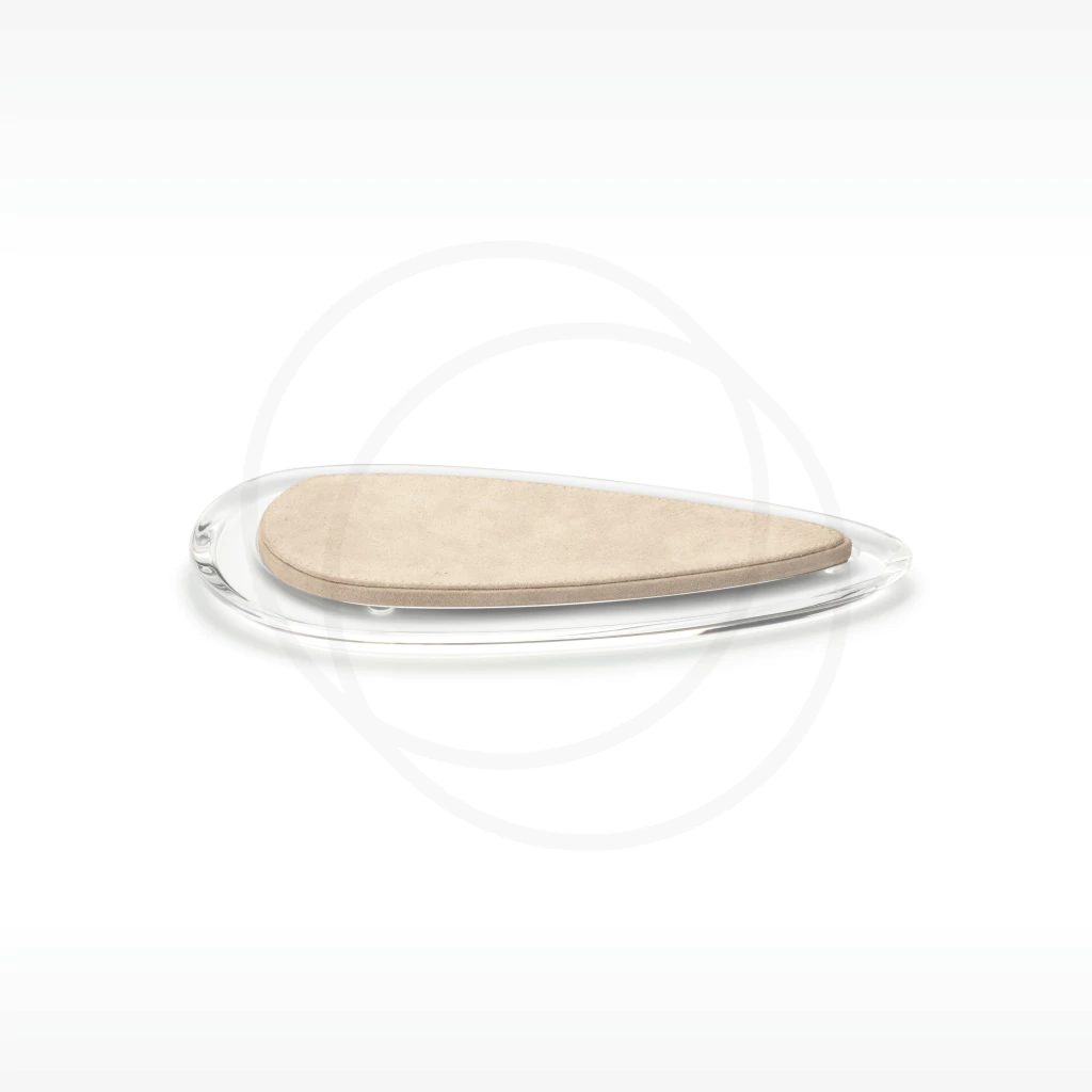 Das mesas de centro Aurora, originou-se as bases, que quando dispostas em conjunto, encaixam entre si, e formam uma composição belíssima em sua décor. Tomada como forma pura, seu design é marcante com suas linhas delimitadas e esculpidas em acrílico trazendo a camurça, como o contraponto perfeito harmonizando a leveza do acrílico com a personalidade marcante da camurça.