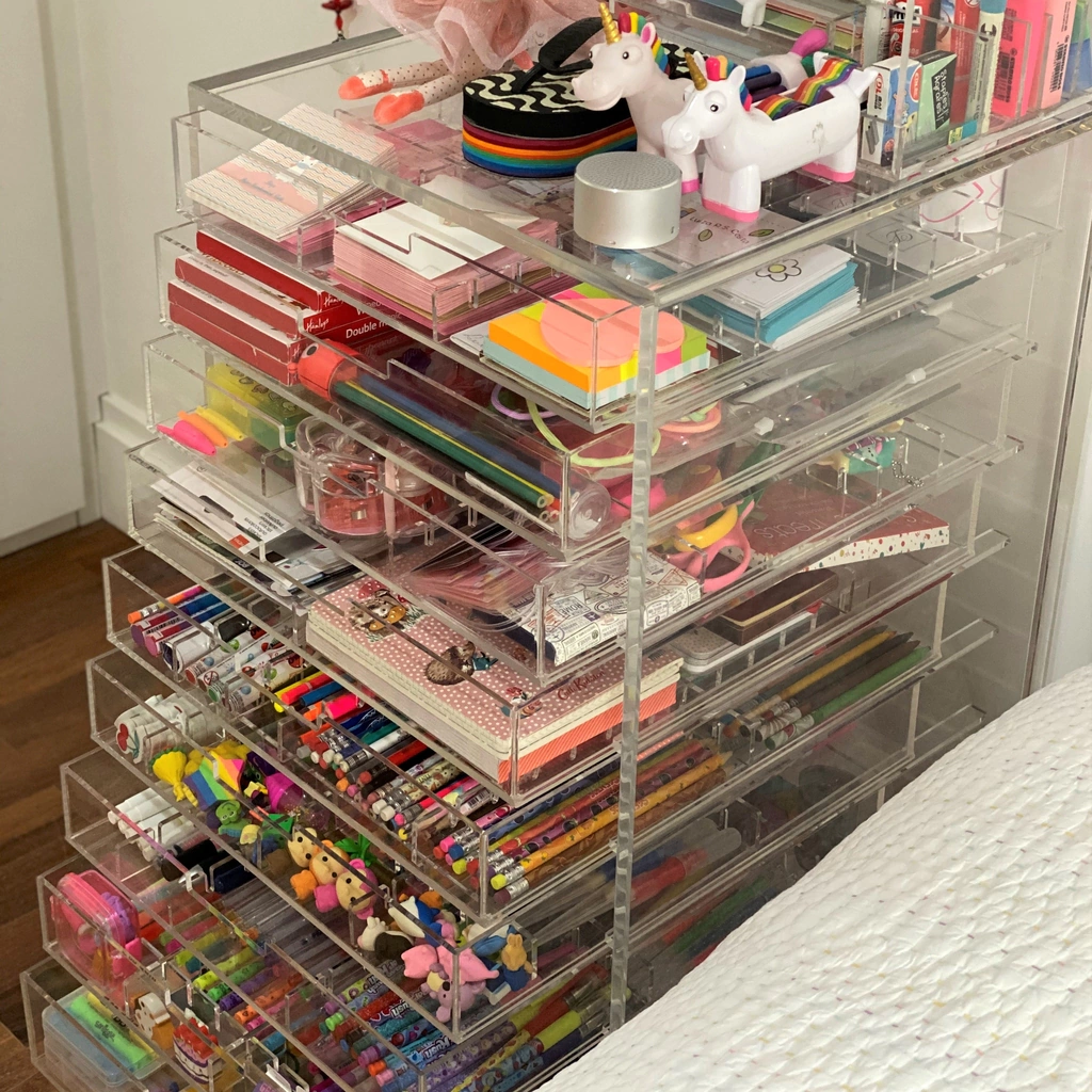 Além do visual moderno, esse carrinho é ótimo quando se trata de praticidade no dia a dia! Com suas 10 gavetas não falta espaço para armazenar acessórios, sem contar que cada uma delas possui divisórias ajustáveis que facilitam a organização!