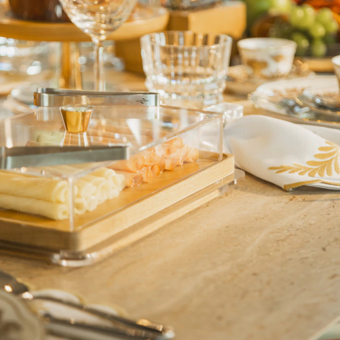 O porta frios é indispensável para a mesa de café da manhã, acondiciona e protege os alimentos de maneira simples e prática. Além de trazer um visual belíssimo para a mesa posta de café da manhã.