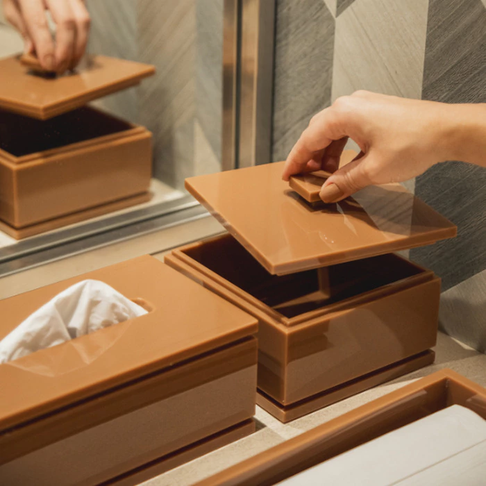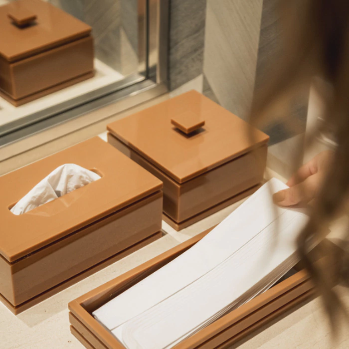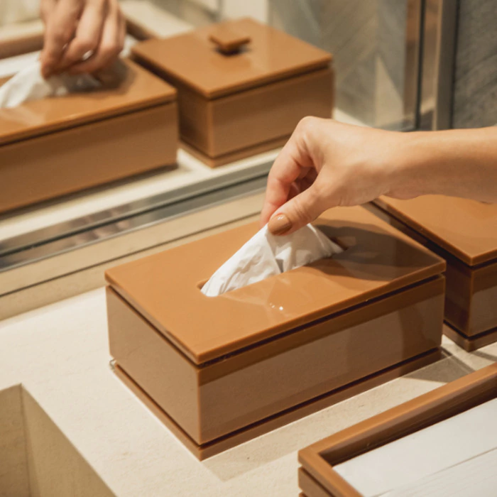 Prático para o dia a dia, o porta-lenços permite o armazenamento e utilização dos lenços com muita facilidade. Sem contar que a leveza do acrílico deixa tudo muito mais elegante!