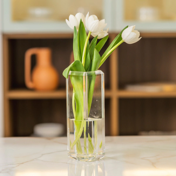 Inspirado no brilho e nas nuances dos cristais, o vaso decorativo da coleção Jewels é uma peça que combina sofisticação e modernidade. Feito em acrílico, com nuances coloridas que se revelam conforme a luz percorre suas superfícies, com o violeta encantador da Ametista, cria um efeito visual surpreendente em qualquer ambiente. Com seu design minimalista e elegante, este vaso é ideal para composições com ou sem flores, trazendo um toque de arte e exclusividade à sua decoração. Perfeito para quem busca beleza e estilo em uma peça única.