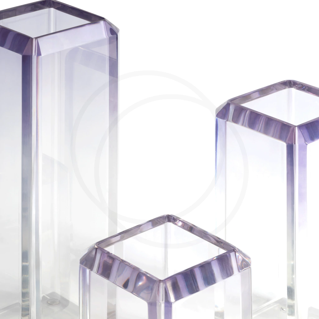 Inspirado no brilho e nas nuances dos cristais, o vaso decorativo da coleção Jewels é uma peça que combina sofisticação e modernidade. Feito em acrílico, com nuances coloridas que se revelam conforme a luz percorre suas superfícies, com o violeta encantador da Ametista, cria um efeito visual surpreendente em qualquer ambiente. Com seu design minimalista e elegante, este vaso é ideal para composições com ou sem flores, trazendo um toque de arte e exclusividade à sua decoração. Perfeito para quem busca beleza e estilo em uma peça única.