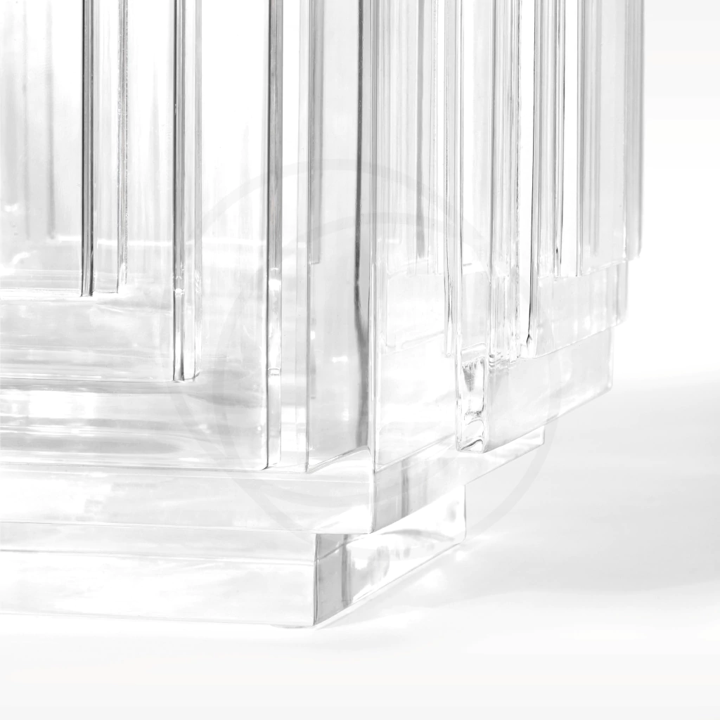 Os vasos Carat são peças únicas que elevam a elegância de qualquer ambiente. Com o design exclusivo da coleção, os puxadores em formato de baguetes foram projetados para difundir os raios solares, tornando-se mais um elemento estético interessante na coleção.